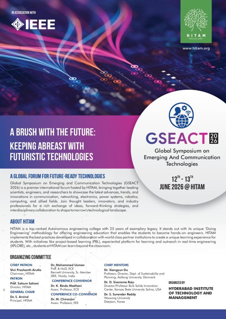 For over 24 years, HITAM has been a beacon of excellence in engineering education. Nestled in a serene green campus in Hyderabad, we stand committed to delivering a high-quality learning experience that empowers students with cutting-edge knowledge, hands-on learning, and a global outlook. Our ‘Doing Engineering’ approach ensures that every student is industry-ready, innovative, and equipped to lead in a rapidly evolving world.